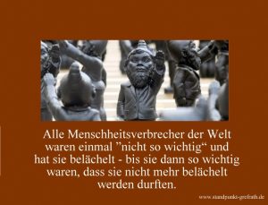 So lasst sie weiter ihre Fahnen schwenken, einzelne Menschen und ganze Dörfer terrorisieren. Lasst sie weiter Marschieren in einem Land, das gebranntes Kind ist. Lasst sie weiter rumoren, die Welt sieht schon weg von dem Land, wo es einst so klein begann.